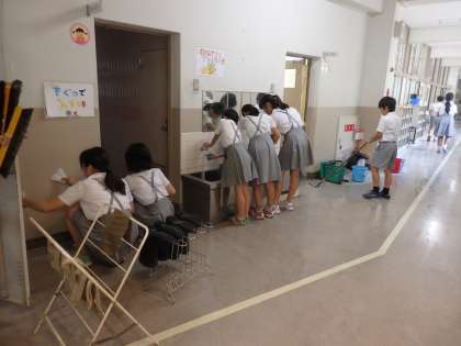 先月から、「学校のために自分たちができること」を考えて行動してきた5年生。6月16日(木)代表委員会の時間には、低学年が使っている校舎の掃除をしました。とても集中していたので、話し声も聞こえないほどでした。