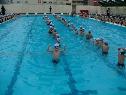 雨が降るか心配されましたが、予定通りプールに入ることができました。