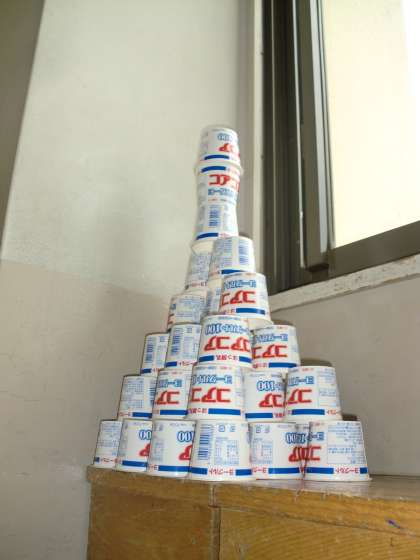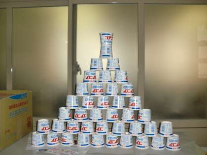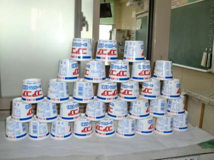 昨日の給食で出たヨーグルトのカップを洗って乾かし、理科や生活、図工などので活用しています。