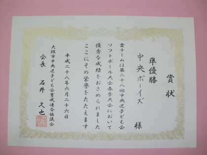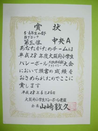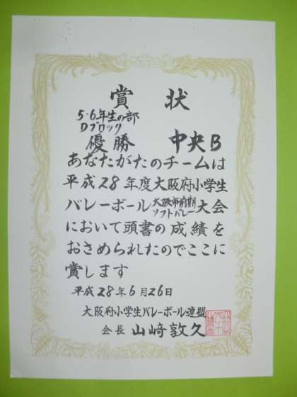 今日の児童朝会では、昨日26日(日)に行われた各大会で優秀な成績を収めた中央ボーイズ(ソフトボール)と中央バレーボールチームの表彰を行いました。