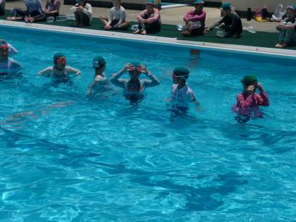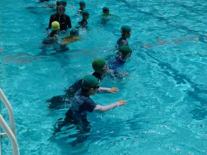 背浮きの方法やペットボトルを浮き具として活用する方法などを学習しました。