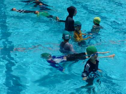 着衣水泳(着衣泳)は、いざというとき、呼吸を確保し救助されるまで浮き続ける自己保全を目的とした対処法です。