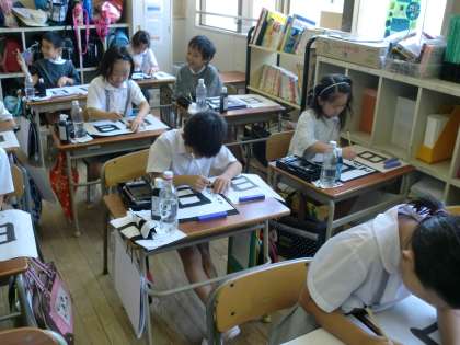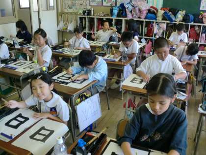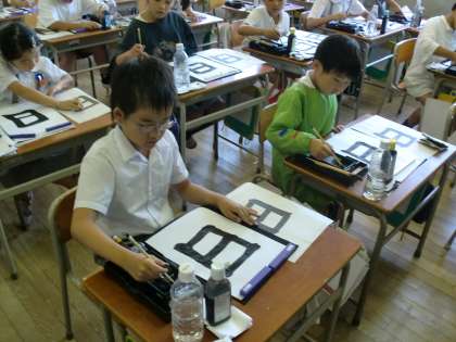 今回で3回目の習字。準備をする時間も短くなりました。筆と鉛筆の書き方の違いを意識しながら学習を進めました。