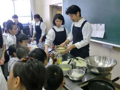 中央区保健福祉センターの企画で、レストランのシェフに来ていただき、料理教室を行いました。