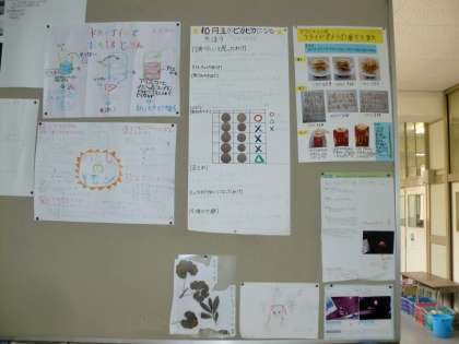 子どもたちが夏休みに一生懸命取り組んだ自由研究を廊下や掲示板などに掲示しています。