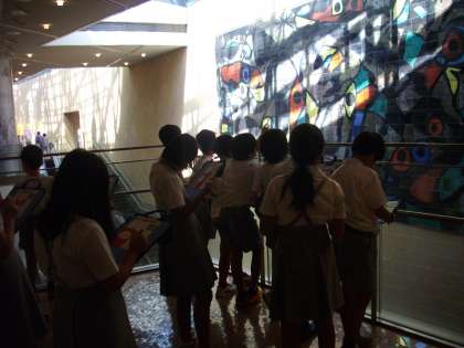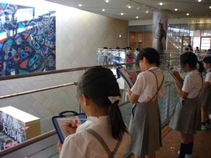 ワークシートに線や色がどうなっているかなどの気づいたことをかいたり、絵をみてお話を作ったりしました。