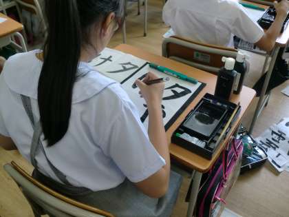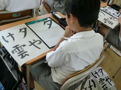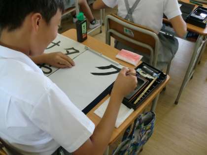 習字の時間は、みんな静かに集中して取り組んでいます。