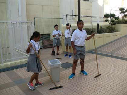 美化委員会は、校内の清掃計画やごみ0(ゼロ)デーの取組み、また日頃の掃除の時間ではなかなか手の行き届かないところの清掃を行っています。