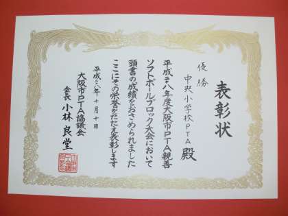 10月10日(月)に天王寺区五条公園にて、PTAソフトボール大会東ブロック大会が行われました。中央区代表として出場した中央小学校チームは、トーナメントを勝ち上がり、見事優勝することができました。たくさんの応援ありがとうございました。