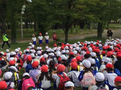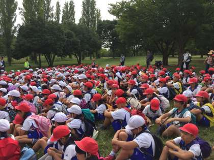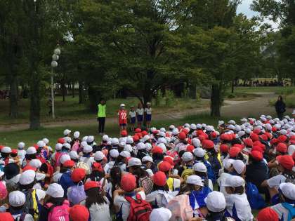 班遊びも終わり、閉会式を行いました。この後は各学年に分かれて遊びます。また低学年は、駅に向かいます。