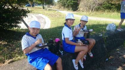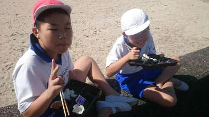 お弁当タイムです。海が近いので風も涼しく気持ちがいいです。