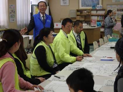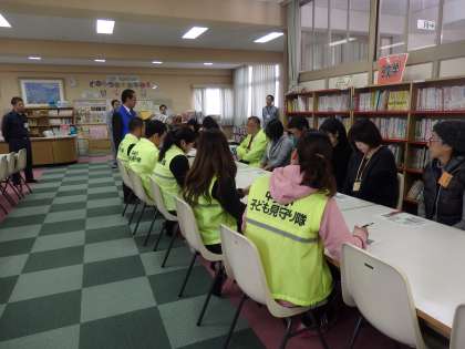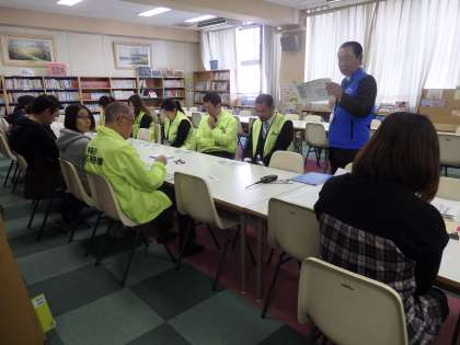 図書室では、PTAの方と教職員で、避難所本部設置訓練を行いました。