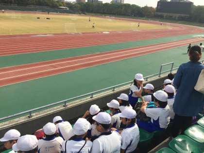 第二陸上競技場に移動し、これからサッカー教室です。