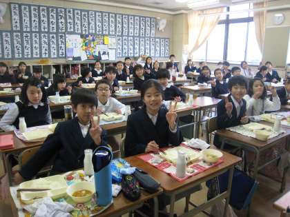 食器や食缶を返却に来た大勢の給食当番からもニコニコ笑顔で「おいしかったヨ!」の声があり、もちろん食缶はカラッポでした!