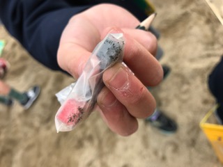 砂の中から採取した砂鉄は、大事に小さなマイ小袋にしまっていました・・・