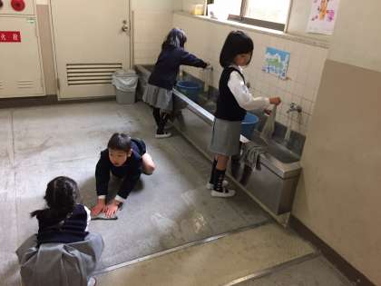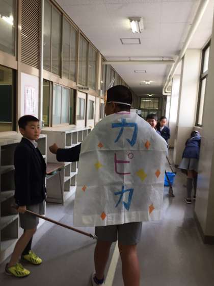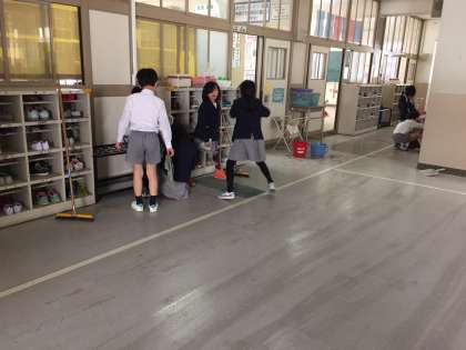 美化委員会の児童が各清掃場所を回り、清掃活動を応援しました。