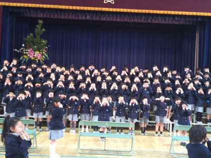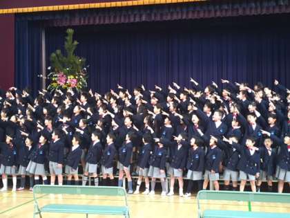 新年度に入学する1年生のために、歓迎の練習をしています。年度最後の修了式の日も、張り切って練習をしました。