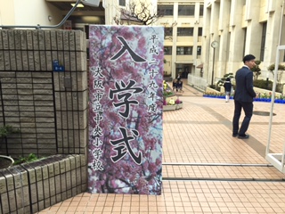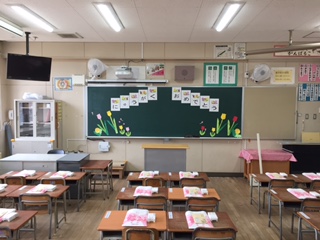 桜の花がきれいに咲くなか、平成29年度入学式が行われました。174名のピカピカの新1年生が元気よく入学してきました。