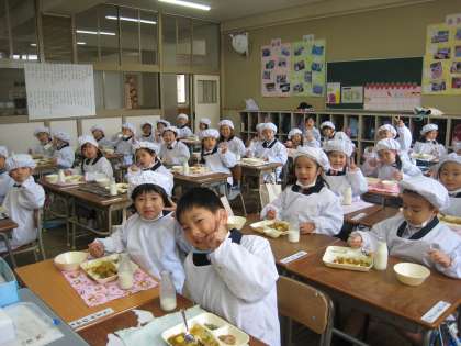 2〜6年生も人気メニューに目をキラキラ輝かせ「おいしかったヨッ!」の声が元気よく出ていました。
