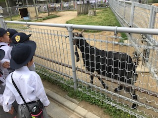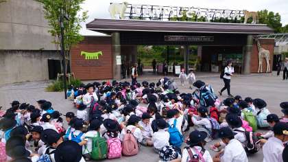 お天気に恵まれ、1年生は初めての遠足に行きました。2列での歩き方や、電車に乗る時の約束など、きちんと守りながら回ることができました。子どもたちは、かっこいい動物や好きな動物などを見つけて、友だちと笑顔で話をしていました。お昼には、みんなでシートを広げて、お弁当を食べました。午前中の疲れも飛んでいくほど、楽しい時間になりました。