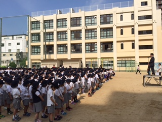 本日、朝の朝会で校長先生のお話を聞きました。いじめについて考える日に各学年で考えたメッセージを校長先生が全校児童にお話になられました。いじめが無い、明るく元気な学校をみなで目指していきたいと思います。