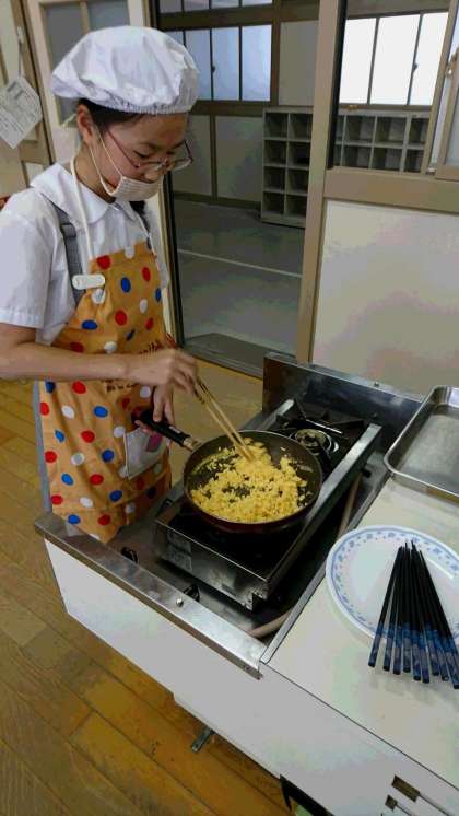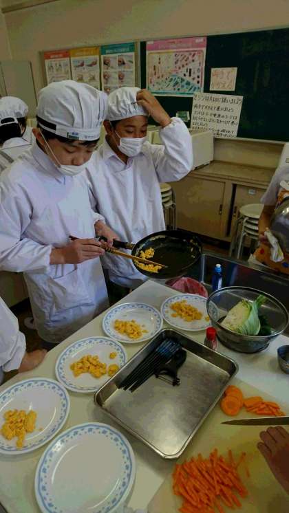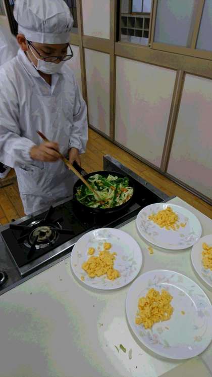 今日は、朝食を作る学習を行いました。火加減に気を付けて上手に炒められました。
