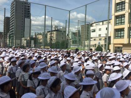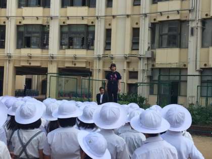 今日の児童朝会では校長先生からプール水泳のお話がありました。
