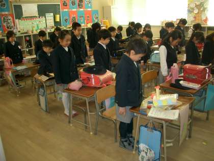 3月11日は、東日本大震災から3年目の日でした。臨時の児童朝会を実施して、校長先生から、震災についての話を聞きました。また、震災が発生した午後2時46分には、放送の合図で、全員で黙とうをささげました。
