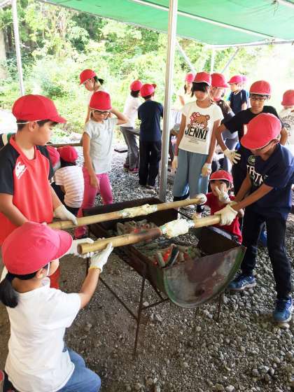 2層目、3層目を焼いてます。交代しながら焼いてます。