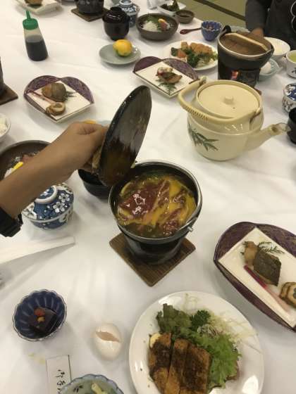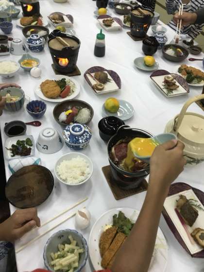 すき焼き、とんかつ、お刺身…どれから食べようかみんな悩んでおります!!