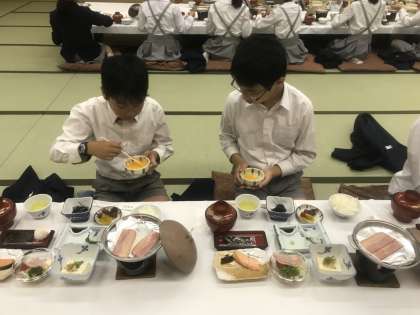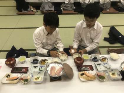 卵を割って、かき混ぜて、かき混ぜないでかける。