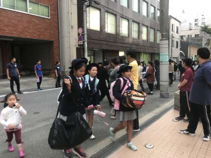 バスの中ではウツウツしていた六年生も、お迎えに来てくださったお家の方々や先生たちの顔を見て、笑顔復活です!
