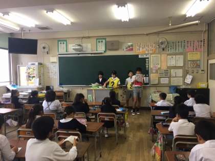 1年生から5年生の子どもたちは、リーダーの話をよく聞いている様子でした。