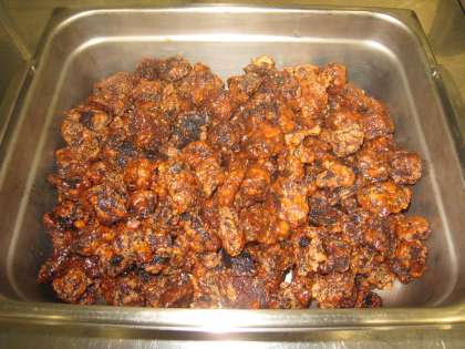 「くじらのオーロラ煮」は大阪市の学校給食発祥の献立です。においが強いくじらをおいしくする工夫がなされ、ケチャップ、砂糖、赤みそで作ったソースをからめています。くじらが使えなくなってから「まぐろのオーロラ煮」で登場し「オーロラ煮」はとぎれることなく、60年近く出ている大人気献立です。