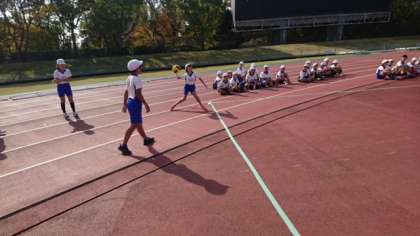 午前中には、サッカーとドッジボールが行われ、午後には100m走、400mリレー、800m走が行われました。どちらも、本格的なグラウンドやトラックで行われ、子どもたちは大興奮でした。100mを一直線に走ったり、400mトラックでバトンをつなぐことは、なかなかできないことなので、とてもよい体験ができたと思います。