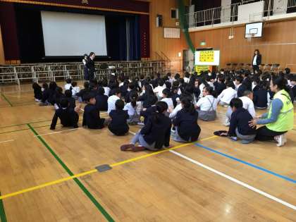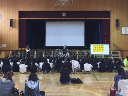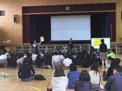 警察署交通課、安全協会、中央区役所ゆめまるパトロール隊の方に来ていただき、自転車の乗り方を教えてもらいました。