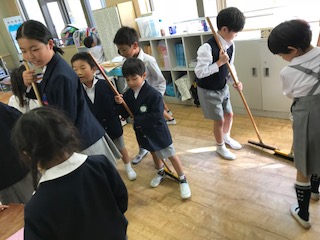 美化委員会の児童が、各教室に入って一緒に掃除をしたり、