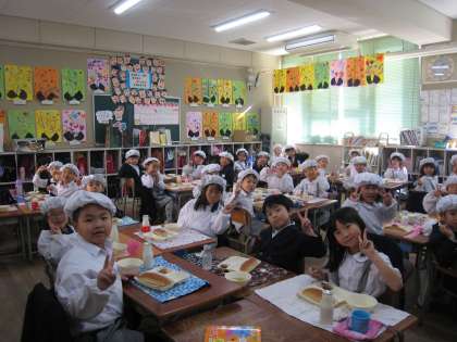 今日は中央小学校の27回目の創立記念日なので、「洋風煮」にラッキーにんじんを特別に3種類(紅葉型、花型、ハート型)作り、楽しみな煮ものにしました。