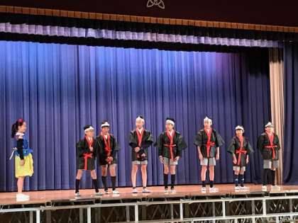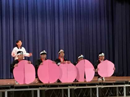 桃太郎と白雪姫がミックスされた、楽しい劇になりました。