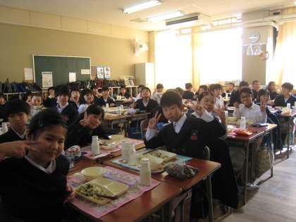 子どもたちは、学校で友達と一緒に食べるお正月の行事献立にニコニコ笑顔でした!