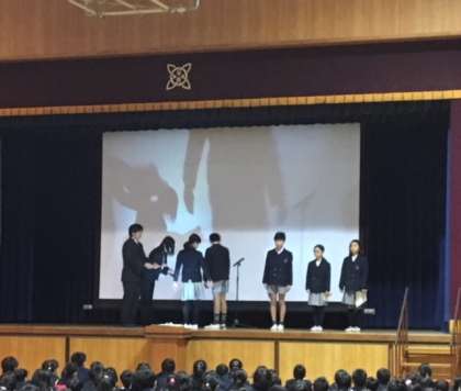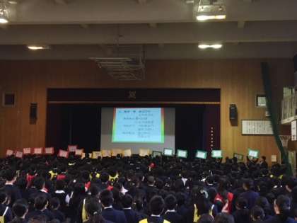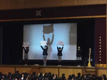 先週はインフルエンザが流行っていたため、集会はありませんでした。そして、今日の集会は給食委員会の発表でした。
