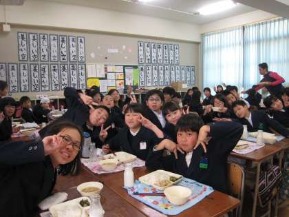 ◎ 休日明けの献立紹介をすると、「ヨッシャー!」の歓声がクラス全体から元気よく上がる給食大好き学級で、もちろん食缶はカラッポでした!