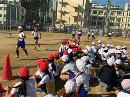 4年生は、晴天の中、持久走の記録会を行いました。今までの記録を更新しようと、一人一人が一生懸命最後まで走り切りました。「がんばれ!」「あともう少し!」「あと1分!」などの友だちを励ます声が飛び交う素敵な記録会になりました。