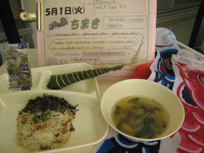 一足早い『こどもの日の行事献立』に歓声が上がりました!(5/1の給食)