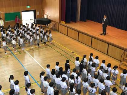 今日の児童朝会は3年生が遠足のため、3年生以外の学年で行いました。今日は、校長先生から大事な命のお話を聞き、自分の身は自分で守ることをみなで確認し合いました。