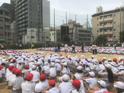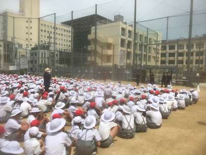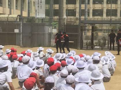 本日、今年度はじめての避難訓練をしました。今日は火災を想定した訓練で、素早く避難することができました。水消火器の訓練もし、充実した訓練となりました。