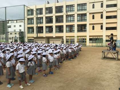 本日の児童朝会では、今週から始まるプール水泳について、校長先生から激励のお言葉をいただきました。みな、自分の目標が達成できるように頑張ってほしいと思います。看護当番の先生からは、プールのときに安全に気を付けて、事故や怪我が無いように学習してほしいと、お話がありました。