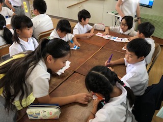 6月27日にあるふれあい集会に向けて、たてわり班でお店の準備をしました。ルールを説明をしたり、準備物の確認をしたり、6年生のリーダーを中心に進めることができました。役割分担をして仲良く楽しみながら準備をしていました。低学年も高学年のペアと一緒に一生懸命取り組むんでいました。