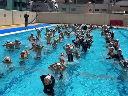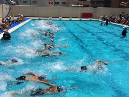 子どもたちの上げる水しぶきが、プールに飛び交っていました。