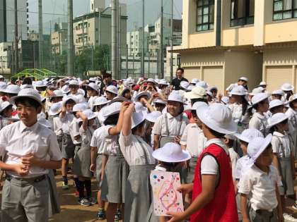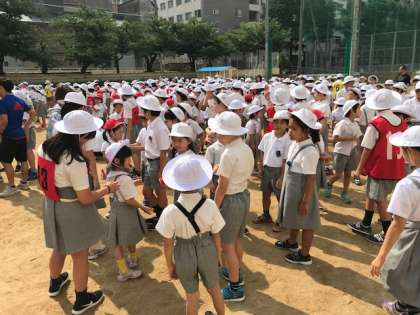 今日の児童集会は、「ボール送りリレー」を行いました。たてわり班でボールを送りながら、なかよし言葉を言っていくゲームでした。班で楽しく活動でき、みんなの仲も深まったのではないかと思います。